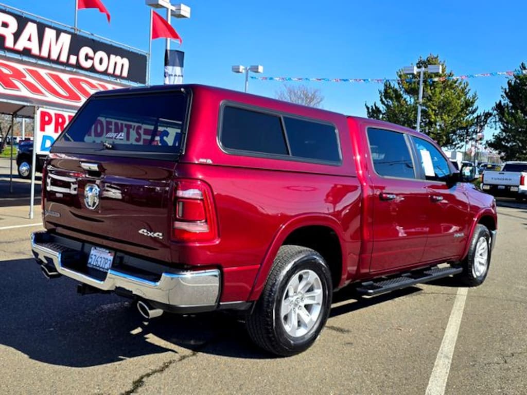 **CARFAX 1 OWNER**, **CLEAN TITLE HISTORY**, Certified Pre-Owned CPO!!, LOCAL TRADE IN, LOW MILES, LIKE NEW, LOTS OF EXTRAS, 1500 Laramie, Ram Combined Certified, 4D Crew Cab, HEMI 5.7L V8 Multi Displacement VVT, 8-Speed Automatic, 4WD, Delmonico Red Pearlcoat, Black Leather, GPS Navigation, Quick Order Package 27H Laramie, #1 Seat Foam Cushion, 10 Speakers, 2nd Row In Floor Storage Bins, 3 Rear Seat Head Restraints, 3.21 Rear Axle Ratio, 4 Way Front Headrests, 4-Wheel Disc Brakes, 48V Belt Starter Generator, 4G LTE Wi-Fi Hot Spot, 8.4" Touchscreen Display, ABS brakes, Adjustable pedals, Air Conditioning, All R1 High Radios, All Radio Equipped Vehicles, Alloy wheels, AM/FM radio: SiriusXM, Anti-Spin Differential Rear Axle, Apple CarPlay, Apple CarPlay/Android Auto, Audio memory, Auto-dimming door mirrors, Auto-Dimming Exterior Driver Mirror, Auto-dimming Rear-View mirror, Automatic temperature control, Brake assist, Bumpers: chrome, Chrome Exterior Mirrors, Compass, Connected Travel & Traffic Services, Connectivity - US/Canada, Convex Wide-Angle Mirror Insert, Delay-off headlights, Disassociated Touchscreen Display, Driver door bin, Driver Seat Memory, Driver vanity mirror, Dual front impact airbags, Dual front side impact airbags, Electronic Stability Control, Exterior Mirrors Courtesy Lamps, Exterior Mirrors w/Heating Element, Exterior Mirrors w/Memory, Exterior Mirrors w/Supplemental Signals, For Details, Visit DriveUconnect.com, For More Info, Call 800-643-2112, Front anti-roll bar, Front Center Armrest w/Storage, Front dual zone A/C, Front fog lights, Front License Plate Bracket, Front reading lights, Front Seat Back Map Pockets, Front wheel independent suspension, Fully automatic headlights, Garage door transmitter, Global Telematics Box Module (TBM), Google Android Auto, GPS Antenna Input, HD Radio, Heated door mirrors, Heated Front Seats, Heated front seats, Heated Steering Wheel, Heated steering wheel, Heavy-Duty Engine Cooling, Illuminated entry, Integrated Center Stack Radio, Integrated Voice Command w/Bluetooth, Leather steering wheel, Leather Trim 40/20/40 Bench Seat, Low tire pressure warning, Manufacturer's Statement of Origin, Memory seat, MOPAR Front & Rear Rubber Floor Mats, Occupant sensing airbag, Outside temperature display, Overhead airbag, Overhead console, Panic alarm, ParkView Rear Back-Up Camera, Passenger door bin, Passenger vanity mirror, Pedal memory, Power 2-Way Driver Lumbar Adjust, Power 2-Way Passenger Lumbar Adjust, Power 8-Way Driver & Passenger Seats, Power door mirrors, Power driver seat, Power passenger seat, Power steering, Power windows, Power-Folding Mirrors, Radio data system, Radio: Uconnect 5 Nav w/8.4" Display, Radio: Uconnect 5 W w/8.4" Display, Rear 60/40 Folding Seat, Rear anti-roll bar, Rear seat center armrest, Rear step bumper, Rear window defroster, Remote keyless entry, Security system, SiriusXM Radio Service, SiriusXM w/360L, Speed control, Split folding rear seat, Steering wheel mounted audio controls, Tachometer, Telescoping steering wheel, Tilt steering wheel, Traction control, Trailer Brake Control, Trip computer, Turn signal indicator mirrors, USB Host Flip, Variably intermittent wipers, Ventilated Front Seats, Ventilated front seats, Voltmeter, Wheels: 18" x 8" Aluminum Base Painted, 1500 Laramie, 4D Crew Cab, HEMI 5.7L V8 Multi Displacement VVT, 8-Speed Automatic, 4WD, Delmonico Red Pearlcoat, Black Leather, GPS Navigation, Quick Order Package 27H Laramie. Odometer is 34121 miles below market average! Certified.