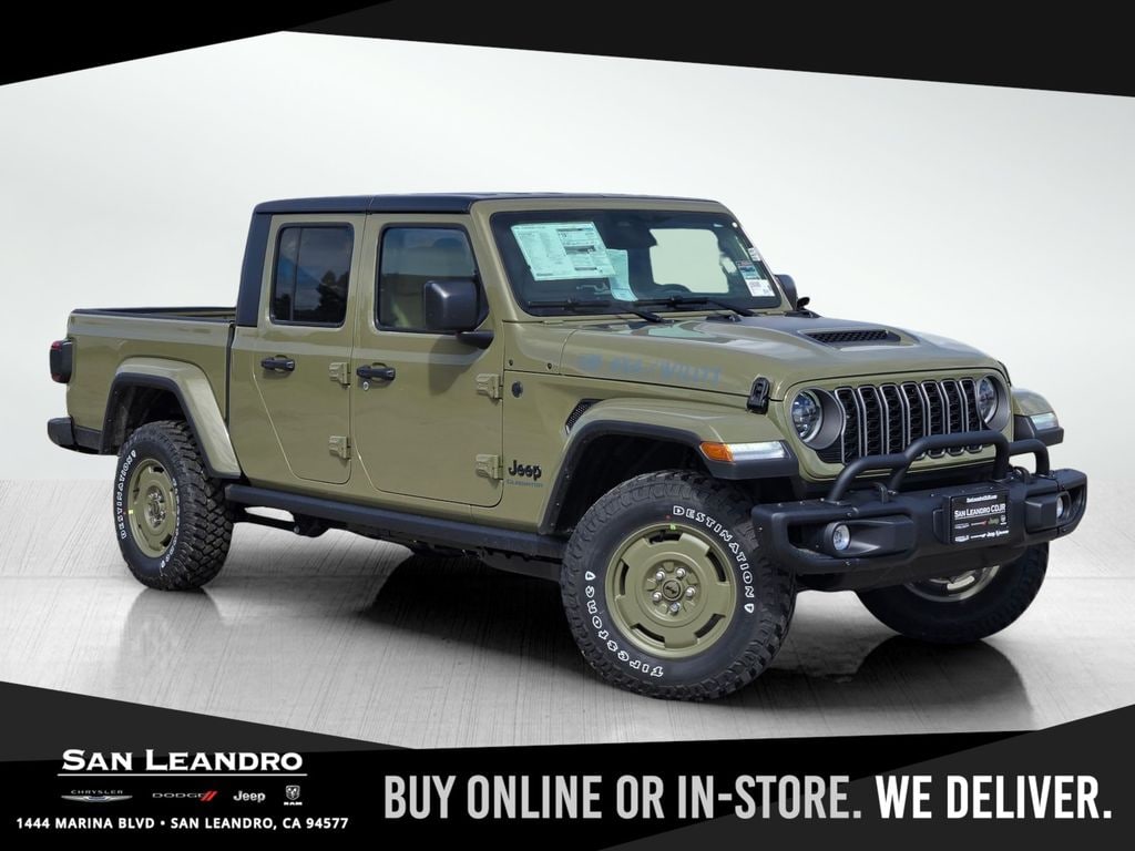 Discover the 2026 Jeep Gladiator Willys 41 â" the ultimate 4WD adventure truck located in San Leandro CA. This rugged Jeep Gladiator combines legendary Jeep capability with a powerful V6, 3.6L gasoline engine, delivering the torque and performance you need for off-road trails and daily drives. With the best price in the area, this Willys 41 offers exceptional value for buyers seeking capability, comfort, and modern tech. This Jeep Gladiator Willys 41 comes equipped with Remote Start for convenience, Apple CarPlay for seamless smartphone integration, and Hands Free Bluetooth for safe, effortless calling and audio streaming. The included Off-Road Package enhances trail performance with heavy-duty components, specialized suspension, and aggressive tires so you can tackle rough terrain confidently. Advanced safety features like Forward Collision Warning provide extra peace of mind on highway runs and backcountry routes. The Willys trim adds unique styling cues, durable interior materials, and utility-focused features tailored to outdoor enthusiasts. Whether you're navigating city streets or exploring coastal and mountain trails around San Leandro, this Jeep Gladiator stands ready. Don't miss your chance to own a capable 4x4 with modern connectivity and proven Jeep heritage â" priced to sell and ready for immediate delivery. Contact us today in San Leandro CA to schedule a test drive and experience the 2026 Jeep Gladiator Willys 41 for yourself.