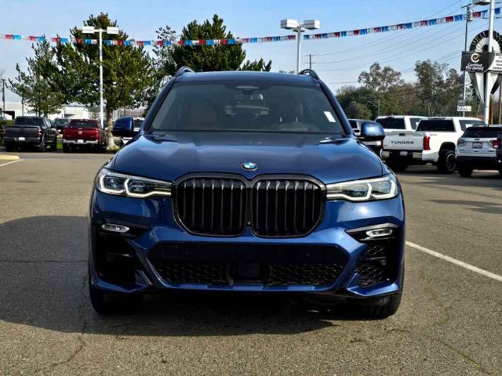**CARFAX 1 OWNER**, **CLEAN TITLE HISTORY**, LOCAL TRADE IN, LOW MILES, LOTS OF EXTRAS, X7 M50i, 4D Sport Utility, 4.4L V8 DOHC 32V, 8-Speed Automatic Sport, AWD, Phytonic Blue Metallic, Tartufo Leather, 5-Zone Automatic Climate Control, Active Comfort Drive w/Road Preview, Active Driving Assistant Pro, Cold Weather Package, Connected Package Pro, Driving Assistance Professional Package, Dynamic Handling Package, Executive Package, Extended Traffic Jam Assistant, Front & Rear Heated Seats, Front Massaging Seats, Front Ventilated Seats, Glass Controls, Heated & Cooled Cup Holders, Integral Active Steering, Luxury Seating Package, Navigation System, Panoramic Sky Lounge LED Roof, 16 Speakers, 3.15 Axle Ratio, 3rd row seats: split-bench, 4-Wheel Disc Brakes, ABS brakes, Air Conditioning, Alloy wheels, AM/FM radio: SiriusXM with 360L, AM/FM Stereo, Apple CarPlay & Android Auto Compatibility, Apple CarPlay Compatibility, Auto High-beam Headlights, Auto tilt-away steering wheel, Auto-dimming door mirrors, Auto-dimming Rear-View mirror, Auto-leveling suspension, Automatic temperature control, BMW Assist eCall, BMW TeleServices, Brake assist, Bumpers: body-color, Compass, ConnectedDrive Services, Delay-off headlights, Door auto-latch, Drive Recorder, Driver door bin, Driver vanity mirror, Dual front impact airbags, Dual front side impact airbags, Electronic Stability Control, Emergency communication system: BMW Assist eCall, Extended Merino Leather Upholstery, Extended Shadowline Trim, Four wheel independent suspension, Front anti-roll bar, Front Bucket Seats, Front Center Armrest, Front dual zone A/C, Front fog lights, Front reading lights, Fully automatic headlights, Garage door transmitter, Genuine wood console insert, Genuine wood dashboard insert, Genuine wood door panel insert, Gesture Control, harman/kardon Surround Sound System, harman/kardon® Speakers, Head restraints memory, Head-Up Display, Heads-Up Display, Heated door mirrors, Heated front seats, Heated Multi-Contour Seats, Heated steering wheel, Illuminated entry, Increased Top Speed Limiter, Knee airbag, Leather Dashboard, Leather Shift Knob, Live Cockpit Pro w/Navi, Low tire pressure warning, Memory seat, Occupant sensing airbag, Outside temperature display, Overhead airbag, Panic alarm, Passenger door bin, Passenger vanity mirror, Power adjustable front head restraints, Power door mirrors, Power driver seat, Power Front Seats, Power moonroof: Panorama, Power passenger seat, Power steering, Power windows, Radio data system, Rain sensing wipers, Rear air conditioning, Rear anti-roll bar, Rear dual zone A/C, Rear reading lights, Rear seat center armrest, Rear window defroster, Rear window wiper, Reclining 3rd row seat, Remote keyless entry, Roof rack: rails only, Security system, SiriusXM w/360L, Speed control, Speed-sensing steering, Speed-Sensitive Wipers, Split folding rear seat, Spoiler, Sport steering wheel, Steering wheel memory, Steering wheel mounted audio controls, Tachometer, Telescoping steering wheel, Tilt steering wheel, Traction control, Trailer Hitch, Trip computer, Turn signal indicator mirrors, Variably intermittent wipers, Vernasca Leather Upholstery, Wheels: 22" x 9.5" Fr & 22" x 10.5" Rr M V-Spoke, Wheels: 22" x 9.5" Fr & 22" x 10.5" Rr Y-Spoke, WiFi Hotspot, Wireless Charging, X7 M50i, 4D Sport Utility, 4.4L V8 DOHC 32V, 8-Speed Automatic Sport, AWD, Phytonic Blue Metallic, Tartufo Leather, 5-Zone Automatic Climate Control, Active Comfort Drive w/Road Preview, Active Driving Assistant Pro, Cold Weather Package, Connected Package Pro, Driving Assistance Professional Package, Dynamic Handling Package, Executive Package, Extended Traffic Jam Assistant, Front & Rear Heated Seats, Front Massaging Seats, Front Ventilated Seats, Glass Controls, Heated & Cooled Cup Holders, Integral Active Steering, Luxury Seating Package, Navigation System, Panoramic Sky Lounge LED Roof. Odometer is 12637 miles below market average!