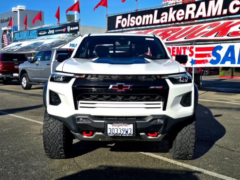 New Price! **CARFAX 1 OWNER**, LOCAL TRADE IN, LOW MILES, LIKE NEW, LOTS OF EXTRAS, Colorado ZR2, 4D Crew Cab, 2.7L Turbo, 8-Speed Automatic, 4WD, Summit White, Jet Black/Artemis Leather, Adaptive Cruise Control, Automatic Emergency Braking, Blind Zone Steering Assist, Chevy Safety Assist, Driver & Front Passenger Ventilated Seats, Driver Memory Settings, Driver Seatback Map Pocket, Electronic Automatic Cruise Control, Following Distance Indicator, Forward Collision Alert, Front Pedestrian & Bicyclist Braking, HD Surround Vision, Heated Steering Wheel, IntelliBeam Automatic High Beam On/Off, Lane Keep Assist w/Lane Departure Warning, Navigation System, Perforated Leather-Appointed Seat Trim, Preferred Equipment Group 4ZR, Rear Center Armrest, Rear Cross Traffic Braking, Rear Park Assist, Rear Pedestrian Alert, Rear-Window Electric Defogger, Safety Package, Technology Package, Wireless Charging, ZR2 Convenience Package III, ZR2 Off-Road Package, 3.42 Rear Axle Ratio, 4-Way Manual Passenger Seat Adjuster, 4-Wheel Disc Brakes, 6 Speakers, 6-Speaker Audio System Feature, 8-Way Power Driver Seat Adjuster, ABS brakes, Air Conditioning, Alloy wheels, AM/FM radio: SiriusXM, Apple CarPlay/Android Auto, Auto High-beam Headlights, Auto-dimming Rear-View mirror, Automatic temperature control, Bose Premium 7-Speaker Audio System Feature, Brake assist, Cloth/Evotex Seat Trim, Compass, Delay-off headlights, Driver door bin, Driver vanity mirror, Dual front impact airbags, Dual front side impact airbags, Electronic Stability Control, Front anti-roll bar, Front Bucket Seats, Front Center Armrest, Front dual zone A/C, Front fog lights, Front License Plate Kit, Front reading lights, Front wheel independent suspension, Heated door mirrors, Heated Driver & Front Passenger Seats, Heated front seats, Illuminated entry, Low tire pressure warning, Occupant sensing airbag, Outside temperature display, Overhead airbag, Overhead console, Panic alarm, Passenger door bin, Passenger Seatback Map Pocket, Passenger vanity mirror, Power door mirrors, Power Driver Lumbar Control Seat Adjuster, Power driver seat, Power Sliding Glass w/Manual Shade Sunroof, Power steering, Power windows, Radio data system, Radio: 11.3" Diagonal Advanced Color LCD Display, Rear reading lights, Rear step bumper, Rear window defroster, Remote keyless entry, Security system, SiriusXM Radio, Speed control, Speed-sensing steering, Split folding rear seat, Steering Wheel Mounted Audio Controls, Steering wheel mounted audio controls, Tachometer, Telescoping steering wheel, Tilt steering wheel, Traction control, Trip computer, Variably intermittent wipers, Wheels: 17" x 8" Graphite & Oxide Gold Aluminum, Wireless Phone Projection, Colorado ZR2, 4D Crew Cab, 2.7L Turbo, 8-Speed Automatic, 4WD, Summit White, Jet Black/Artemis Leather, Adaptive Cruise Control, Automatic Emergency Braking, Blind Zone Steering Assist, Chevy Safety Assist, Driver & Front Passenger Ventilated Seats, Driver Memory Settings, Driver Seatback Map Pocket, Electronic Automatic Cruise Control, Following Distance Indicator, Forward Collision Alert, Front Pedestrian & Bicyclist Braking, HD Surround Vision, Heated Steering Wheel, IntelliBeam Automatic High Beam On/Off, Lane Keep Assist w/Lane Departure Warning, Navigation System, Perforated Leather-Appointed Seat Trim, Preferred Equipment Group 4ZR, Rear Center Armrest, Rear Cross Traffic Braking, Rear Park Assist, Rear Pedestrian Alert, Rear-Window Electric Defogger, Safety Package, Technology Package, Wireless Charging, ZR2 Convenience Package III, ZR2 Off-Road Package.