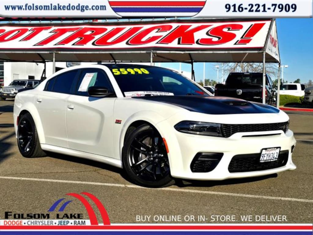 **CARFAX 1 OWNER**, **CLEAN TITLE HISTORY**, Certified Pre-Owned CPO!!, LOCAL TRADE IN, Charger R/T Scat Pack Widebody, Dodge Combined Certified, 4D Sedan, SRT HEMI 6.4L V8 MDS, 8-Speed Automatic, RWD, White Knuckle Clearcoat, Black Artificial Leather, 19 harman/kardon GreenEdge Speakers, Adaptive Damping Suspension, All Speed Traction Control, Auto Adjust In Reverse Exterior Mirrors, Auto-Dimming Exterior Driver Mirror, Black-Edged Premium Floormats, Blind Spot & Cross Path Detection, Blind Spot Memory/Power/Heat Mirror, Body Color Fender Flares, Brembo 6-Pot Fixed Front Caliper Brakes, Driver & Passenger Lower LED Lamps, Exterior Mirrors Courtesy Lamps, Exterior Mirrors w/Heating Element, Flat-Bottom Steering Wheel, Front Overhead LED Lighting, harman/kardon Audio Group, harman/kardon GreenEdge Amp, Heated Front Seats, Performance Shift Indicator, Plus Group, Power 2-Way Driver Lumbar Adjust, Power 2-Way Passenger Lumbar Adjust, Power Front Driver/Passenger Seats, Power Tilt/Telescope Steering Column, Premium-Stitched Dash Panel, Quick Order Package 21V Scat Pack Widebody, Radio/Driver Seat/Mirrors Memory, Rear Armrest w/Cupholder Seat, Scat Pack Logo Nappa/Alcantara Seat, Surround Sound, Ventilated Front Seats, Wheels: 20" x 11" Carbon Black Aluminum, Widebody Competition Suspension, Widebody Package, 1-Yr SiriusXM Guardian Trial, 2-Piece Shark Fin Antenna, 4-Wheel Disc Brakes, 4G LTE Wi-Fi Hot Spot, 6 Speakers, 8.4" Touchscreen Display, ABS brakes, Adaptive Damping Suspension (DISC), Air Conditioning, Alloy wheels, AM/FM radio: SiriusXM, Anti-whiplash front head restraints, Apple CarPlay, Apple CarPlay/Android Auto, Auto-dimming Rear-View mirror, Automatic temperature control, Brake assist, Bumpers: body-color, Cloth Performance Seats w/Heat, Compass, Delay-off headlights, Driver door bin, Driver vanity mirror, Dual front impact airbags, Dual front side impact airbags, Electronic Stability Control, Emergency communication system: SiriusXM Guardian, For Details, Visit DriveUconnect.com, Four wheel independent suspension, Front anti-roll bar, Front Bucket Seats, Front Center Armrest, Front dual zone A/C, Front fog lights, Front License Plate Bracket, Front reading lights, Fully automatic headlights, Garage door transmitter: HomeLink, Google Android Auto, GPS Antenna Input, HD Radio, Heated door mirrors, Heated front seats, Heated steering wheel, Illuminated entry, Integrated Center Stack Radio, Integrated Voice Command w/Bluetooth, Knee airbag, Leather Shift Knob, Low tire pressure warning, Manufacturer's Statement of Origin, Media Hub (2 USB, AUX), Occupant sensing airbag, Outside temperature display, Overhead airbag, Overhead console, Panic alarm, ParkView Rear Back-Up Camera, Passenger door bin, Passenger vanity mirror, Power door mirrors, Power driver seat, Power steering, Power Sunroof, Power windows, Radio: Uconnect 4C w/8.4" Display, Rear anti-roll bar, Rear reading lights, Rear seat center armrest, Rear window defroster, Remote keyless entry, Security system, Speed control, Speed-Sensitive Wipers, Split folding rear seat, Spoiler, Sport steering wheel, Steering wheel mounted audio controls, Tachometer, Telescoping steering wheel, Tilt steering wheel, Traction control, Trip computer, USB Host Flip, Variably intermittent wipers, Wheels: 20" x 9" Lo Gloss Granite Crystal, Charger R/T Scat Pack Widebody, 4D Sedan, SRT HEMI 6.4L V8 MDS, 8-Speed Automatic, RWD, White Knuckle Clearcoat, Black Artificial Leather, 19 harman/kardon GreenEdge Speakers, Adaptive Damping Suspension, All Speed Traction Control, Auto Adjust In Reverse Exterior Mirrors, Auto-Dimming Exterior Driver Mirror, Black-Edged Premium Floormats, Blind Spot & Cross Path Detection, Blind Spot Memory/Power/Heat Mirror, Body Color Fender Flares, Brembo 6-Pot Fixed Front Caliper Brakes, Driver & Passenger Lower LED Lamps, Exterior Mirrors Courtesy Lamps, Exterior Mirrors w/Heating Element, Flat-Bottom Steering Wheel, Front Overhead LED Lighting, harman/kardon Aud