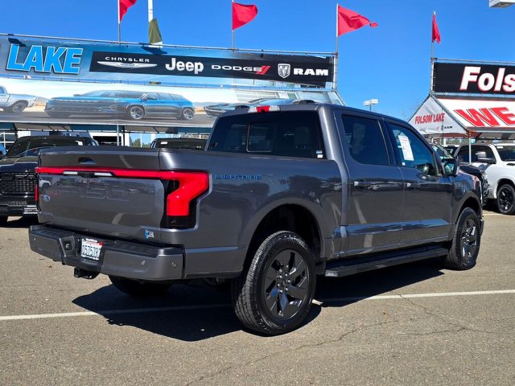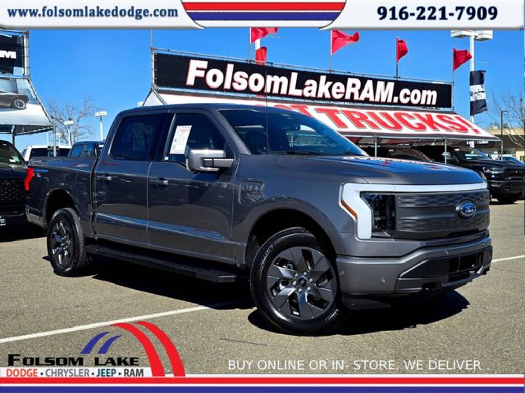76/61 City/Highway MPG **CARFAX 1 OWNER**, **CLEAN TITLE HISTORY**, F-150 Lightning Lariat, 4D Crew Cab, Electric Motor, Single-Speed Automatic, AWD, Gray Metallic, Black Leather, Forward Sensing System, Max Trailer Tow Package, Navigation system: Connected Navigation (3-year trial), Pro Trailer Backup Assist, Tow Technology Package, Trailer Brake Controller, 4-Wheel Disc Brakes, ABS brakes, Adjustable pedals, Air Conditioning, Alloy wheels, AM/FM radio: SiriusXM with 360L, Auto High-beam Headlights, Auto-dimming Rear-View mirror, Automatic temperature control, Brake assist, Bumpers: body-color, Compass, Delay-off headlights, Driver door bin, Driver vanity mirror, Dual front impact airbags, Dual front side impact airbags, Electronic Stability Control, Emergency communication system: SYNC 4 911 Assist, Four wheel independent suspension, Front anti-roll bar, Front Bucket Seats, Front Center Armrest, Front dual zone A/C, Front License Plate Bracket, Front reading lights, Fully automatic headlights, Heated door mirrors, Illuminated entry, Illuminated running boards, Knee airbag, Low tire pressure warning, Occupant sensing airbag, Outside temperature display, Overhead airbag, Overhead console, Panic alarm, Passenger door bin, Passenger vanity mirror, Power door mirrors, Power driver seat, Power steering, Power windows, Radio data system, Rear anti-roll bar, Rear reading lights, Rear step bumper, Rear window defroster, Remote keyless entry, Security system, Speed control, Speed-sensing steering, Split folding rear seat, Steering wheel mounted audio controls, Telescoping steering wheel, Tilt steering wheel, Tough Bed Spray-In Bedliner, Traction control, Tray Style Floor Liner, Trip computer, Turn signal indicator mirrors, Variably intermittent wipers, Wheels: 20" Alloy Dark Carbonized Gray, F-150 Lightning Lariat, 4D Crew Cab, Electric Motor, Single-Speed Automatic, AWD, Gray Metallic, Black Leather, Forward Sensing System, Max Trailer Tow Package, Navigation system: Connected Navigation (3-year trial), Pro Trailer Backup Assist, Tow Technology Package, Trailer Brake Controller. Odometer is 5989 miles below market average!