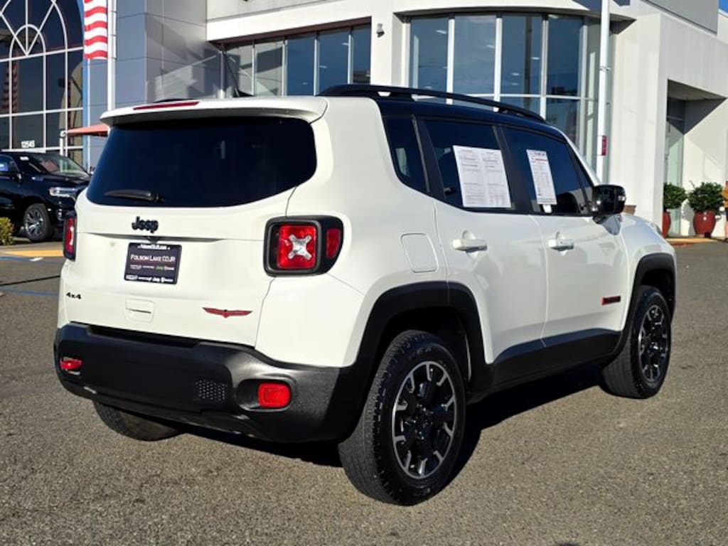 22/27 City/Highway MPG **CARFAX 1 OWNER**, Certified Pre-Owned CPO!!, MANAGER'S SPECIAL, LOW MILES, LOTS OF EXTRAS, Renegade Trailhawk, Jeep Combined Certified, 4D Sport Utility, 1.3L I4, 9-Speed 948TE Automatic, 4WD, Alpine White Clearcoat, Black Cloth, Navigation System, Quick Order Package 22C, 4-Wheel Disc Brakes, 4.585 Final Drive Ratio, 6 Speakers, ABS brakes, Air Conditioning, Alloy wheels, AM/FM radio: SiriusXM, Anti-whiplash front head restraints, Apple CarPlay/Android Auto, Auto-dimming Rear-View mirror, Automatic temperature control, Brake assist, Compass, Delay-off headlights, Driver door bin, Driver vanity mirror, Dual front impact airbags, Dual front side impact airbags, Electronic Stability Control, Emergency communication system: SiriusXM Guardian, Four wheel independent suspension, Front anti-roll bar, Front Bucket Seats, Front Center Armrest, Front dual zone A/C, Front fog lights, Front reading lights, Fully automatic headlights, Heated door mirrors, Illuminated entry, Knee airbag, Leather Shift Knob, Leather steering wheel, Low tire pressure warning, Normal Duty Suspension, Occupant sensing airbag, Outside temperature display, Overhead airbag, Panic alarm, ParkView Rear Back-Up Camera, Passenger door bin, Passenger vanity mirror, Power door mirrors, Power steering, Power windows, Premium Cloth Low-Back Bucket Seats, Radio data system, Radio: Uconnect 4C Nav w/8.4" Display, Rain sensing wipers, Rear anti-roll bar, Rear window defroster, Rear window wiper, Remote keyless entry, Roof rack: rails only, Security system, Speed control, Split folding rear seat, Spoiler, Steering wheel mounted audio controls, Tachometer, Telescoping steering wheel, Tilt steering wheel, Traction control, Trip computer, Turn signal indicator mirrors, Variably intermittent wipers, Voltmeter, Wheels: 17" x 7" Glossy Black Diamond Cut, Renegade Trailhawk, 4D Sport Utility, 1.3L I4, 9-Speed 948TE Automatic, 4WD, Alpine White Clearcoat, Black Cloth, Navigation System, Quick Order Package 22C. Certified.