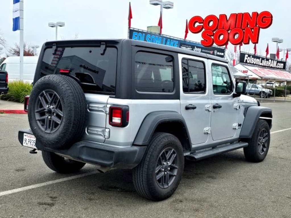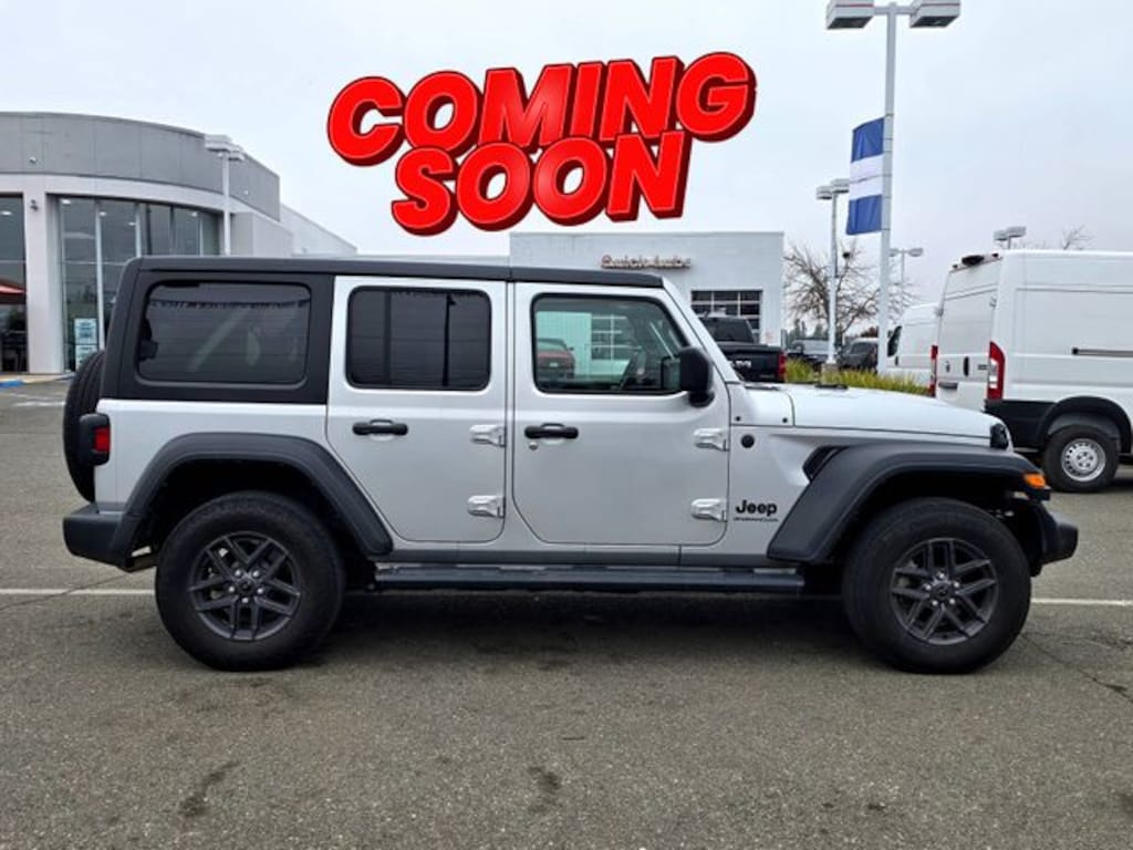Certified Pre-Owned CPO!!, MANAGER'S SPECIAL, Wrangler Sport S, Jeep Combined Certified, 4D Sport Utility, 2.0L I4 DOHC, 8-Speed Automatic, 4WD, Silver Zynith Clearcoat, Black Cloth, Advanced Brake Assist, Automatic Headlamps, Black 3-Piece Hard Top, Corning Gorilla Glass, Deep Tint Sunscreen Windows, Enhanced Adaptive Cruise Control, Freedom Panel Storage Bag, Front 1-Touch Down Power Windows, Full Speed Forward Collision Warning Plus, No Soft Top, Power Heated Mirrors, Premium Wrapped Steering Wheel, Quick Order Package 22S Sport S, Rear Window Defroster, Rear Window Wiper/Washer, Remote Keyless Entry, Security Alarm, Speed Sensitive Power Locks, Sport S, Sun Visors w/Illuminated Vanity Mirrors, Wheels: 17" x 7.5" Gray, 110 MPH Vehicle Max Speed Calibration, 3.45 Overall Top Gear Ratio, 4-Wheel Disc Brakes, 8 Speakers, ABS brakes, Air Conditioning, AM/FM radio, Apple CarPlay/Android Auto, Aux Battery, Brake assist, Cloth Low-Back Bucket Seats, Compass, Delay-off headlights, Driver door bin, Driver vanity mirror, Dual front impact airbags, Dual front side impact airbags, Electronic Stability Control, Front anti-roll bar, Front Bucket Seats, Front Center Armrest w/Storage, Front fog lights, Front reading lights, Integrated roll-over protection, Low tire pressure warning, Mopar Black Tubular Side Steps, Non-Lock Fuel Cap w/o Discriminator, Normal Duty Suspension, Occupant sensing airbag, Outside temperature display, Overhead airbag, ParkView Rear Back-Up Camera, Passenger door bin, Passenger vanity mirror, Power steering, Radio data system, Radio: Uconnect 5 w/12.3" Display, Rear anti-roll bar, Rear reading lights, Speed control, Split folding rear seat, Steering wheel mounted audio controls, Stop-Start Dual Battery System, Tachometer, Telescoping steering wheel, Tilt steering wheel, Traction control, Trip computer, Variably intermittent wipers, Wheels: 17" x 7.5" Black Steel Styled, Wrangler Sport S, 4D Sport Utility, 2.0L I4 DOHC, 8-Speed Automatic, 4WD, Silver Zynith Clearcoat, Black Cloth, Advanced Brake Assist, Automatic Headlamps, Black 3-Piece Hard Top, Corning Gorilla Glass, Deep Tint Sunscreen Windows, Enhanced Adaptive Cruise Control, Freedom Panel Storage Bag, Front 1-Touch Down Power Windows, Full Speed Forward Collision Warning Plus, No Soft Top, Power Heated Mirrors, Premium Wrapped Steering Wheel, Quick Order Package 22S Sport S, Rear Window Defroster, Rear Window Wiper/Washer, Remote Keyless Entry, Security Alarm, Speed Sensitive Power Locks, Sport S, Sun Visors w/Illuminated Vanity Mirrors, Wheels: 17" x 7.5" Gray. Certified.