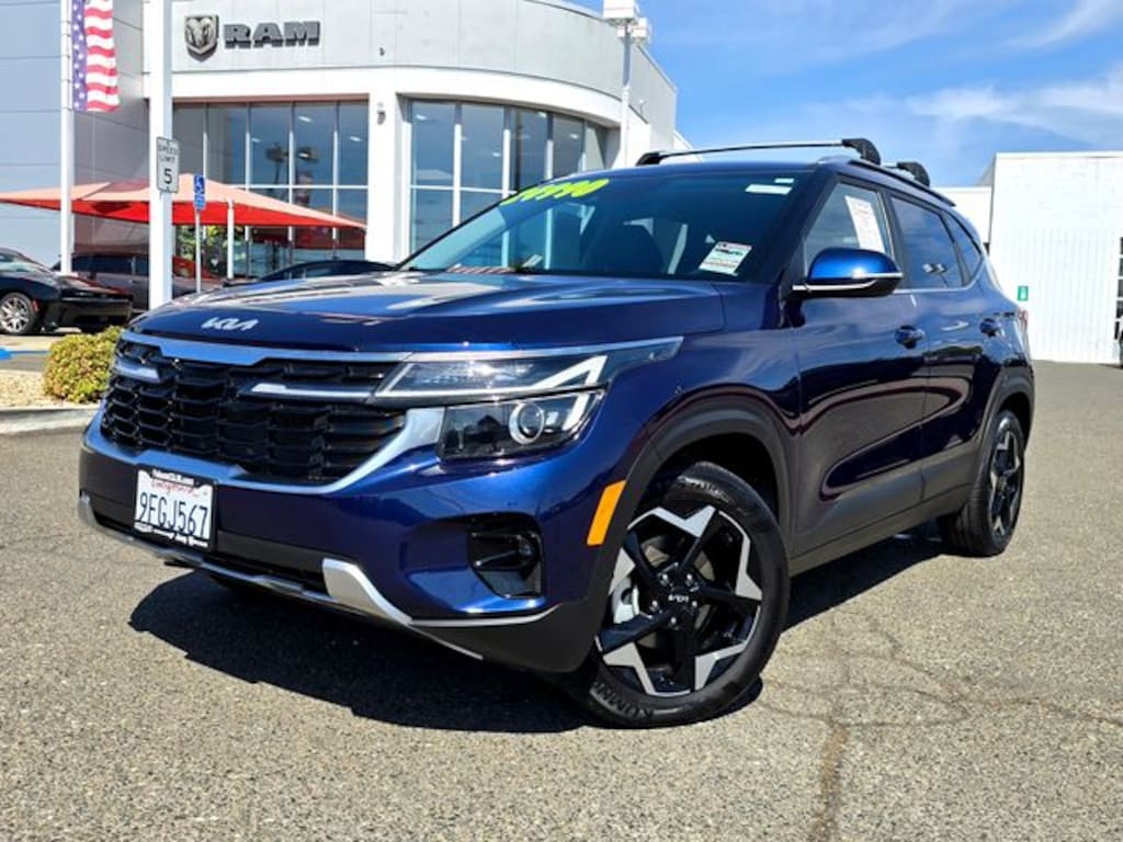28/34 City/Highway MPG **CLEAN TITLE HISTORY**, MANAGER'S SPECIAL, LOW MILES, LIKE NEW, Seltos EX, 4D Sport Utility, 2.0L I4 MPI, CVT, FWD, Dark Ocean Blue, Black Artificial Leather, Navigation System, 4-Wheel Disc Brakes, 6 Speakers, 6.052 Axle Ratio, ABS brakes, Air Conditioning, Alloy wheels, AM/FM radio: SiriusXM, Apple CarPlay & Android Auto, Auto High-beam Headlights, Automatic temperature control, Brake assist, Bumpers: body-color, Carpet Floor Mats, Cross Bars, Delay-off headlights, Driver door bin, Driver vanity mirror, Dual front impact airbags, Dual front side impact airbags, Electronic Stability Control, Emergency communication system: 911 Connect, Exterior Parking Camera Rear, Front anti-roll bar, Front Bucket Seats, Front Center Armrest, Front fog lights, Front reading lights, Front wheel independent suspension, Fully automatic headlights, Heated door mirrors, Heated Front Bucket Seats, Heated front seats, Illuminated entry, Leather Shift Knob, Leather steering wheel, Low tire pressure warning, Occupant sensing airbag, Outside temperature display, Overhead airbag, Overhead console, Panic alarm, Passenger door bin, Passenger vanity mirror, Power door mirrors, Power driver seat, Power steering, Power windows, Radio: AM/FM/HD/Satellite Display System, Rear seat center armrest, Rear window defroster, Rear window wiper, Remote keyless entry, Security system, Sofino Premium Leatherette Seat Trim, Speed control, Speed-sensing steering, Split folding rear seat, Spoiler, Steering wheel mounted audio controls, Tachometer, Telescoping steering wheel, Tilt steering wheel, Traction control, Trip computer, Turn signal indicator mirrors, Variably intermittent wipers, Wheels: 17" Alloy w/Machine Finished, Seltos EX, 4D Sport Utility, 2.0L I4 MPI, CVT, FWD, Dark Ocean Blue, Black Artificial Leather, Navigation System.